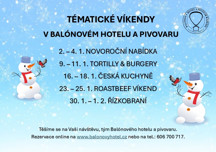 S novým rokem 2026 přicházíme i s novou nabídkou tématických víkendů, tak jak je u nás zvykem. Vyberte si, které chutě Vám jsou nejblíž a přijďte k nám do Radešína. My se na oplátku budeme těšit na Vaši návštěvu.